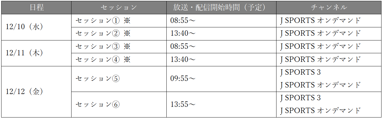 『J SPORTS』放送・配信スケジュール