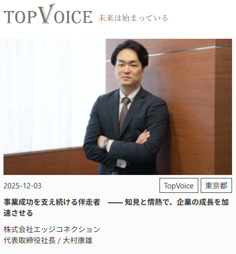 今回、新たに掲載されたのは、「株式会社エッジコネクション(以下:エッジコネクション)」の代表取締役社長を務める、大村康雄様のインタビュー記事です。