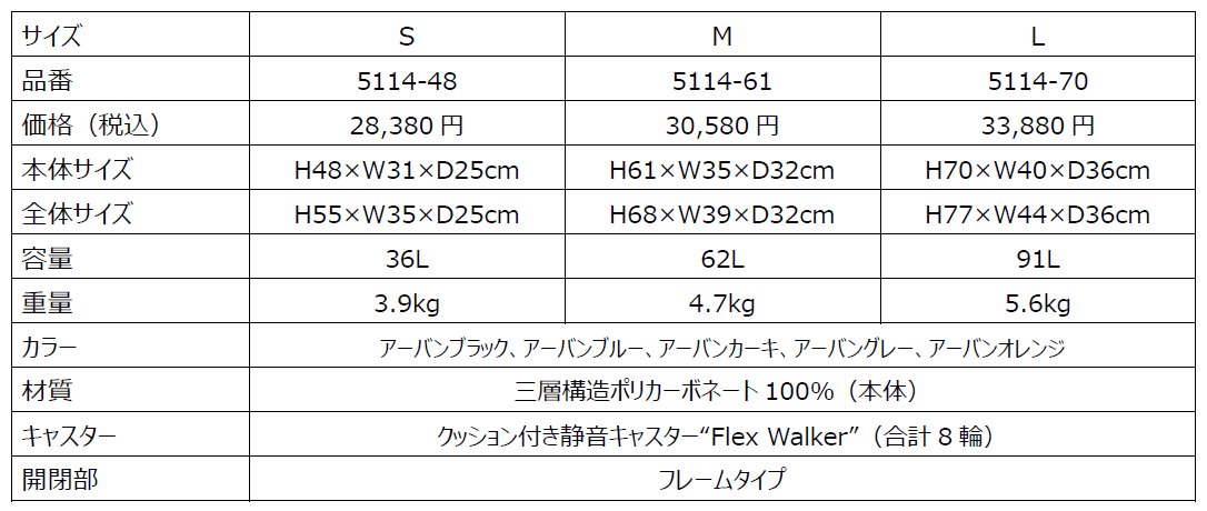 製品URL:https://tands-luggage.jp/products/5114_hard-case