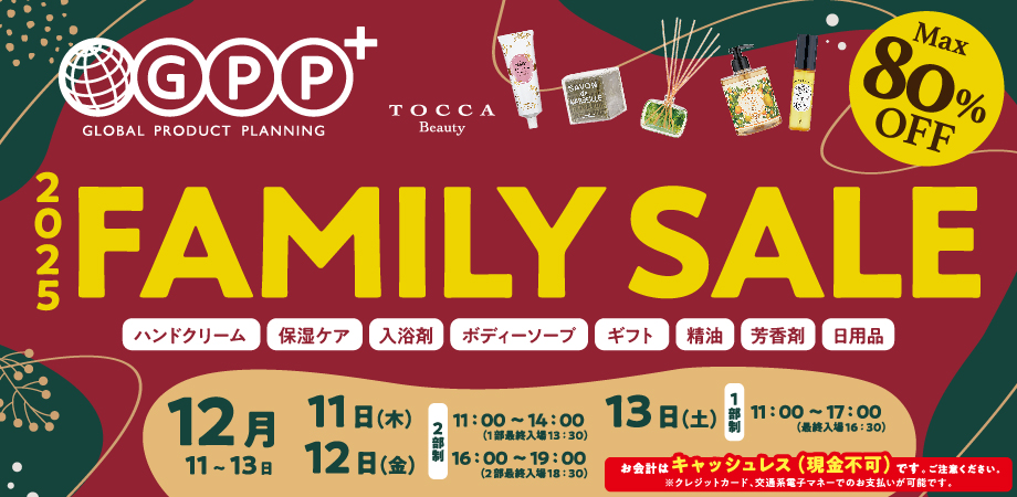 MAX80%OFF!ボディケア・アロマの『GPPファミリーセール2025』12月11日(木)~13日(土)に開催!