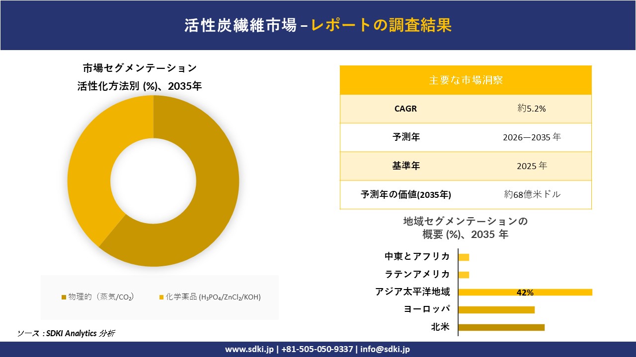 詳細な市場調査レポートのリンクは次の場所から入手できます: https://www.sdki.jp/reports/activated-carbon-fiber-market/113225