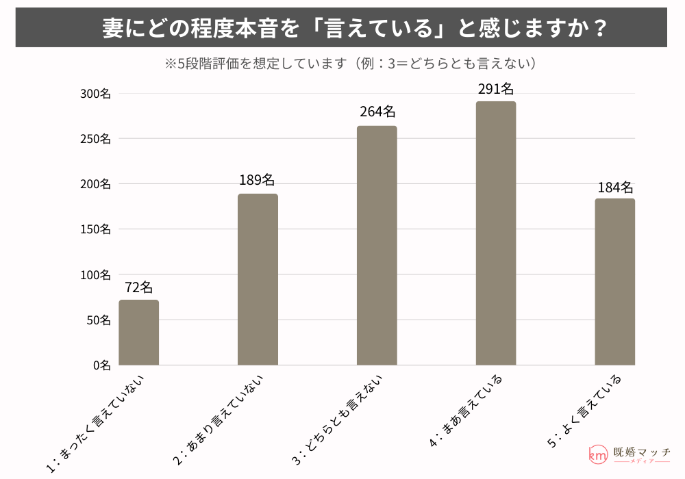「妻にどの程度本音を『言えている』と感じますか?」という質問(5段階評価)に対する結果は次の通りです。