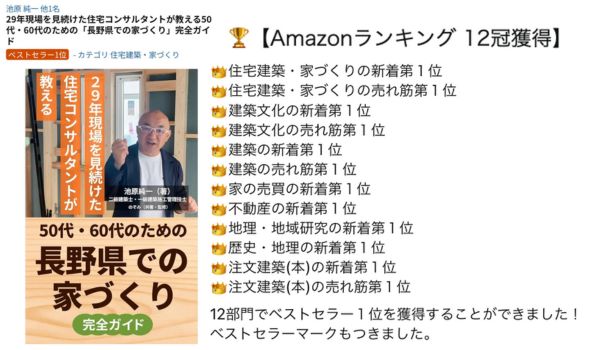 エルハウス社長「長野県での家づくり」電子書籍を出版。Amazonランキング12部門で第1位を獲得