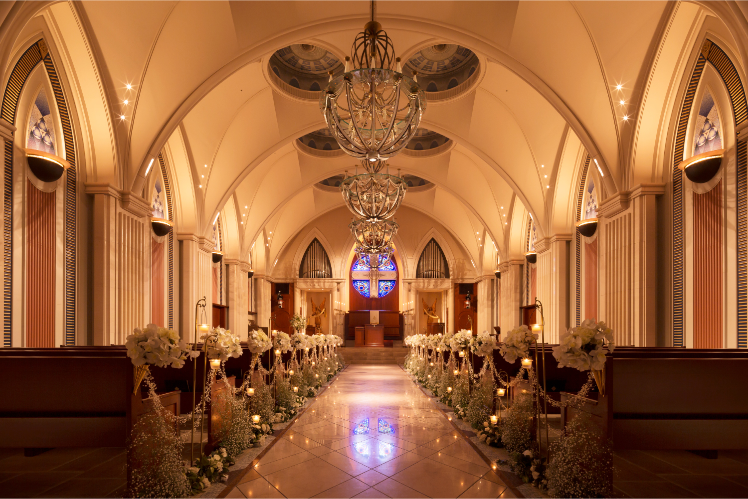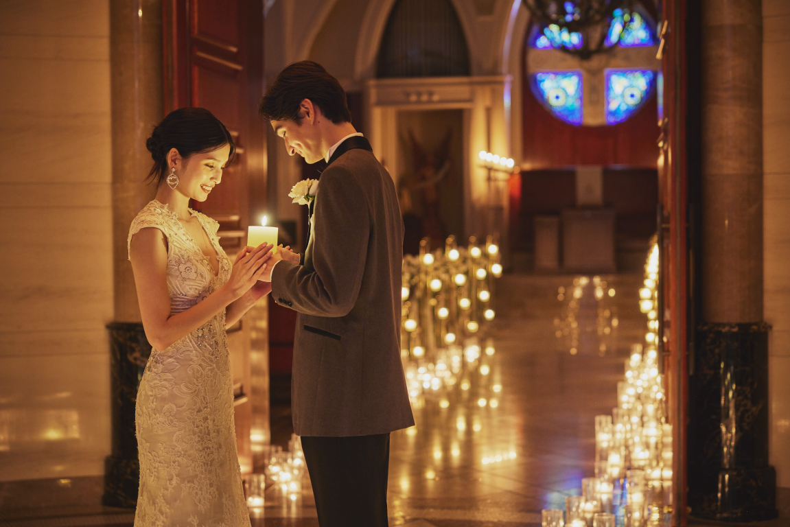 お食事後に、イルミネーションで彩られた館内を見学。大聖堂でおふたりの時間を過ごす、ロマンチックな演出がお好きな方にぴったりのロケーションです。生涯忘れられないプロポーズが叶います。