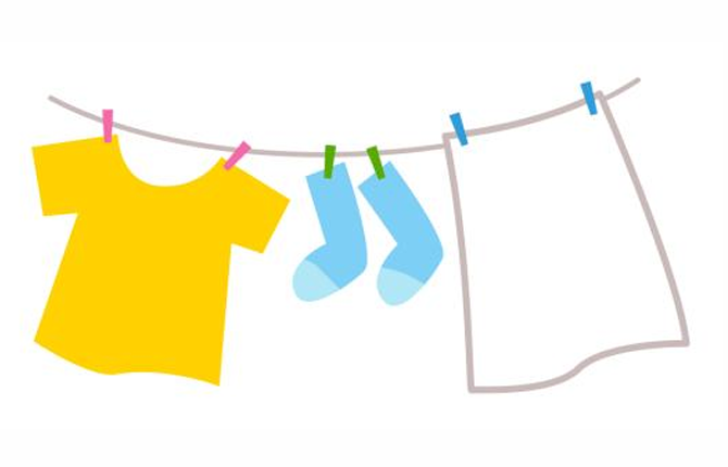 洗濯物がキレイにたためると気分がいいものです。そのために、洗濯物を干すときにちょっとした手間をかけてあげましょう。ハンガーやピンチに洗濯物を吊るしたら、生地の両端を指でつまんで「ピンッ!」と張り、形を整えてから干すだけ。形が崩れることなく乾くので、角が揃ってキレイにたたむことができます。道具も一切必要ないので、今日からできるお手伝いテクニックです。