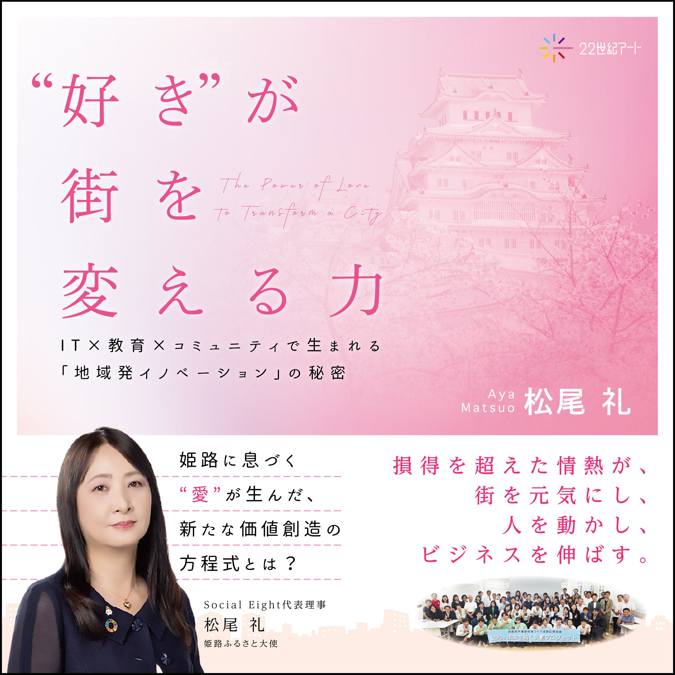 株式会社22世紀アートは、女性活躍を目指す時代に、仕事と子育てを両立する女性へ向けて、 兵庫県姫路市を拠点に、地域課題の解決と新しい価値創造を目指すSocial Eight代表・松尾礼さんによるオーディオブック 『好きが街を変える力 IT×教育×コミュニティで生まれる「地域発イノベーション」の秘密』を発売いたしました。