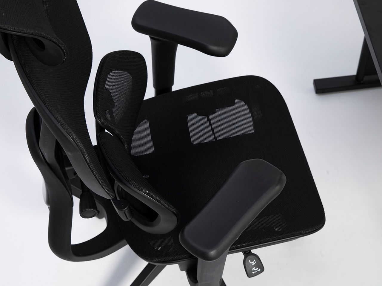 gg-chairのオリジナルチェア。長時間のゲームプレイでも疲れにくいサポート機能が充実しています。メッシュ生地を全面に採用し、通気性と快適性を追求。ランバーサポートは2枚分割式で腰にしっかりフィットする構造です。異なる体型や体格にも対応し、腰や肩への負担を軽減しながら、没頭するゲーマーの身体をサポートします。