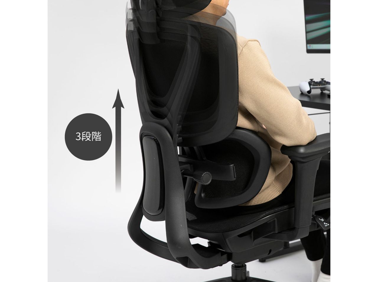 背もたれの高さを3段階で調整可能。身長や体型に合わせて調整することでフィット感が向上し、腰や背中周りをより的確にサポートできます。