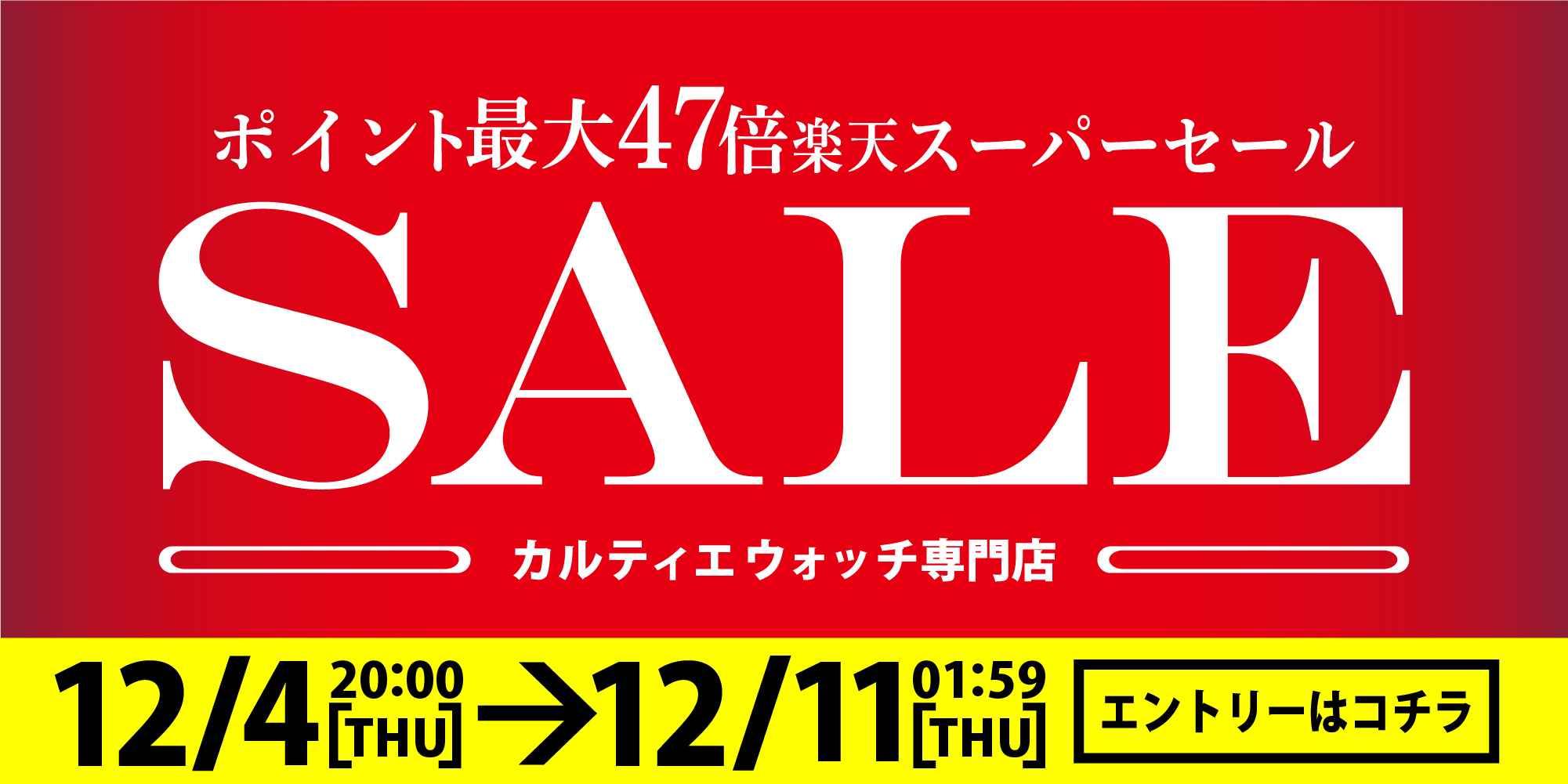 株式会社俵屋(本社:大阪府大阪市)が運営するカルティエのヴィンテージ・アンティーク時計専門店「TAWARAYA」は、2025年12月4日(木)20:00より開催される楽天市場最大級のイベント「楽天スーパーセール」に参加いたします。期間中は、全品対象・最大10万円OFFとなる特大クーポンを配布。さらに、市場でも珍しい極小サイズの「プチヴァンドーム」など、一点ものの希少モデルを販売開始いたします。一年頑張った自分へのご褒美に、時を超えて愛されるヴィンテージウォッチをご提案します。