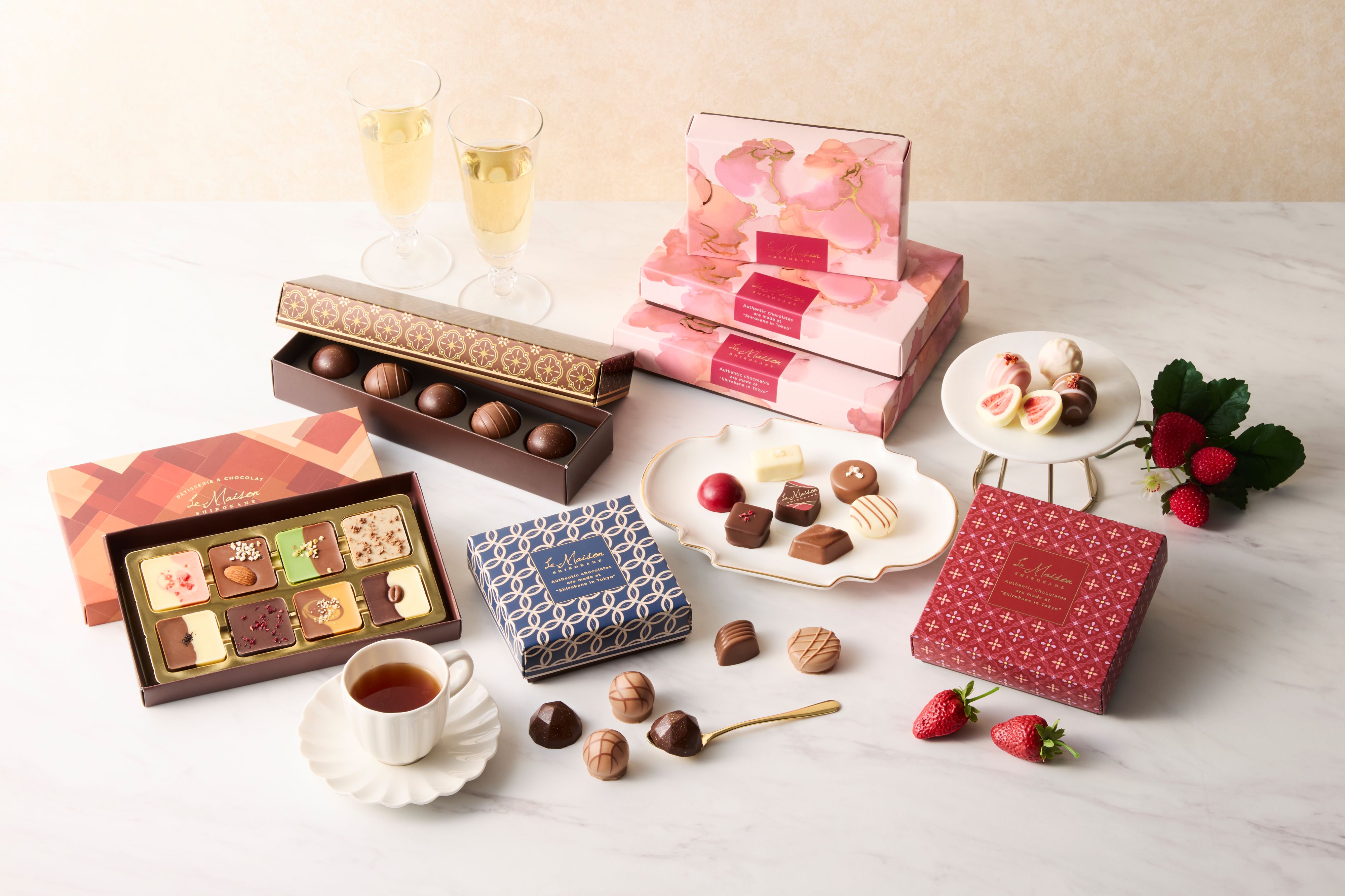 あまおう苺やフルーツキャラメル、上品な白金ショコラまで、ラ・メゾン白金が誇るショコラを一度に楽しめる贅沢なアソートメント。