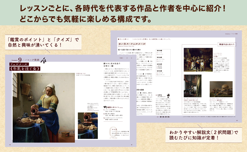 丁寧な説明で、美術鑑賞の基礎を楽しく身につけることができ、日常的にアートを楽しむ習慣づけにも最適の一冊です。