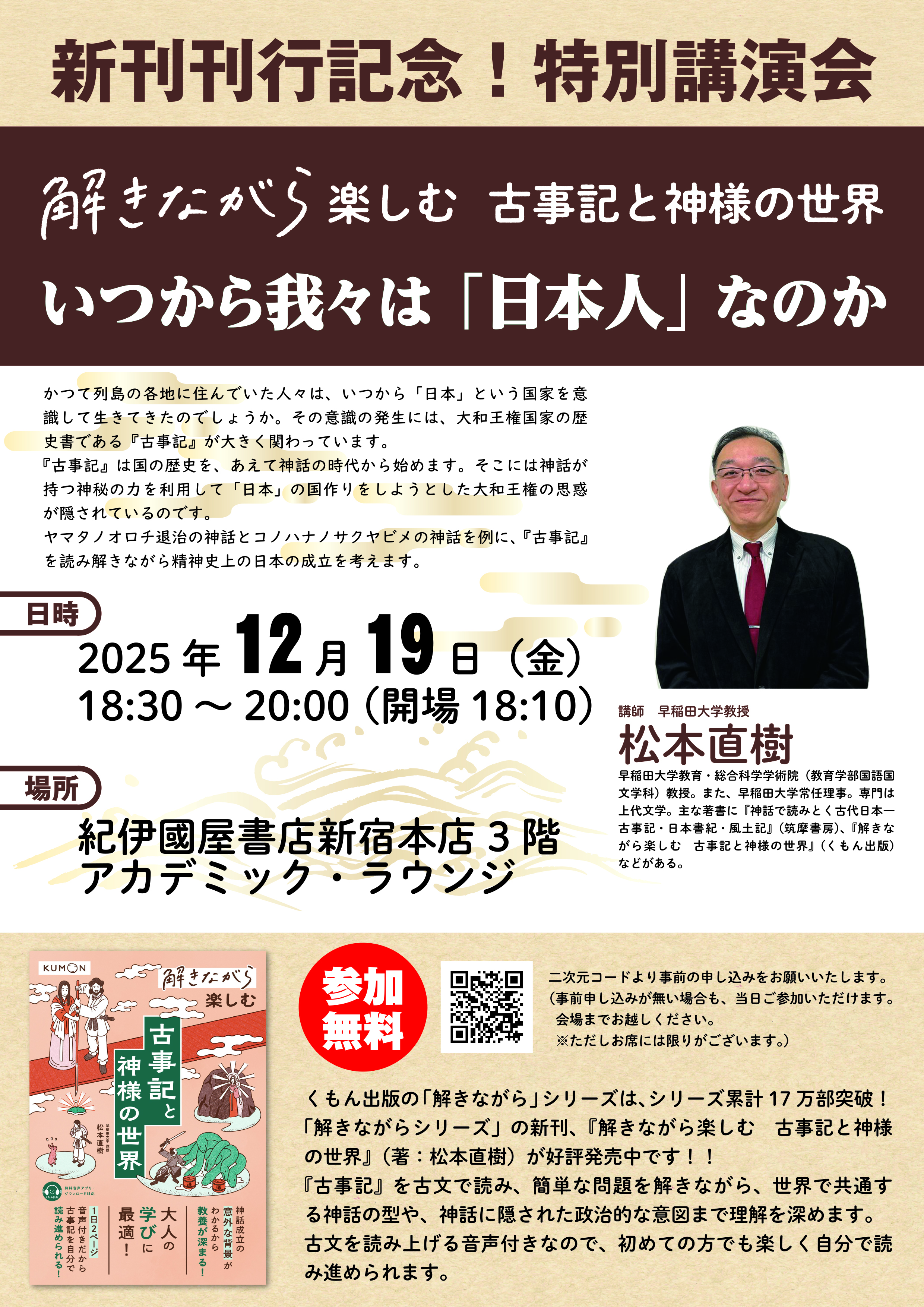 12月19日(金)18時30分から 『解きながら楽しむ 古事記と神様の世界』刊行記念特別講演会 「いつから我々は「日本人」なのか」開催!