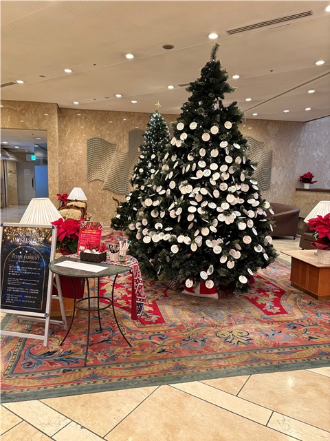 ホテルスプリングス幕張本館では、開業以来大切にしてきた「お客様とともに季節を祝うホテル」を体現する冬の恒例企画として、2025年も願いごとを飾るクリスマスツリーをロビーに設置しております。本館エントランスをお迎えする高さ約4メートルのツリーには、来館された皆さまにお書きいただいた“WISH(願い)”オーナメントが一つひとつ飾られ、館内に温かな光とともに広がる「願いの森」を演出します。本企画は、ご宿泊のお客様だけでなく、レストラン利用や通りがかりの地域の皆さまにも自由にご参加いただける開かれたイベントとして、毎年多くの方々にご好評を頂戴しております。また、集まった願いは年末にスタッフが心を込めてまとめ、翌年への祈りを込めてツリーを完成させます。ホテルスプリングス幕張では、訪れるすべての方に心穏やかなひとときをお届けできるよう、これからも地域の皆さまと歩む季節イベントを展開してまいります。
