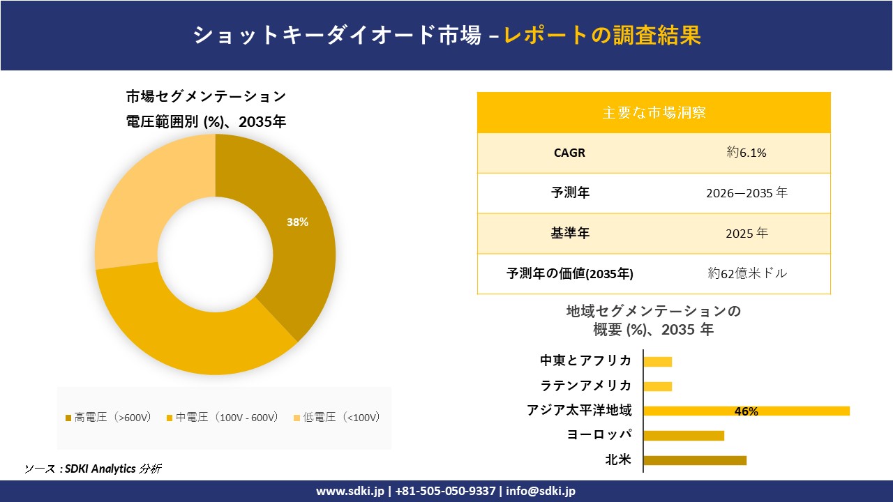 ショットキーダイオード市場規模は2035年までに62億米ドルを超える SDKI Analyticsのリサーチアナリストが調査