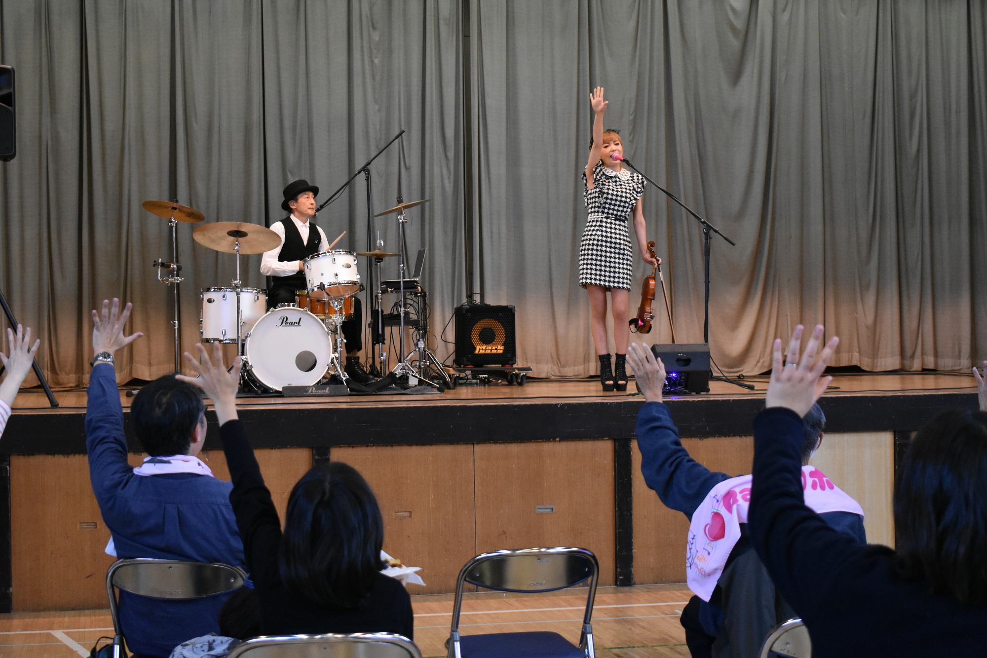 バイオリンとドラムの音楽ライブにより、会場全体が明るく盛り上がりフィナーレを迎えました 。