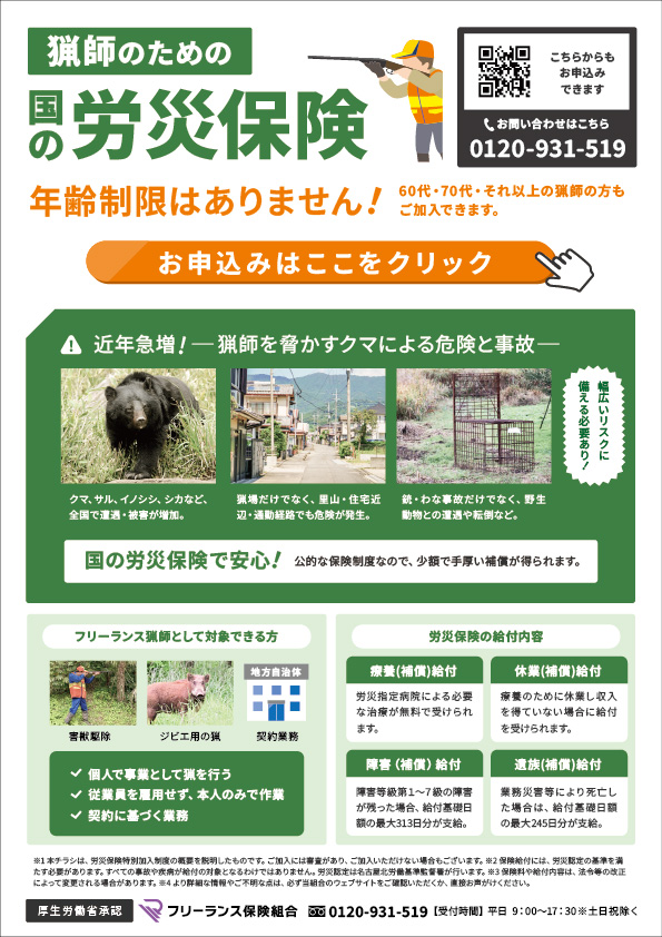 このお知らせが、危険な現場で活躍されているフリーランスの猟師の方々、そして猟友会の皆様の安心につながることを願っております。