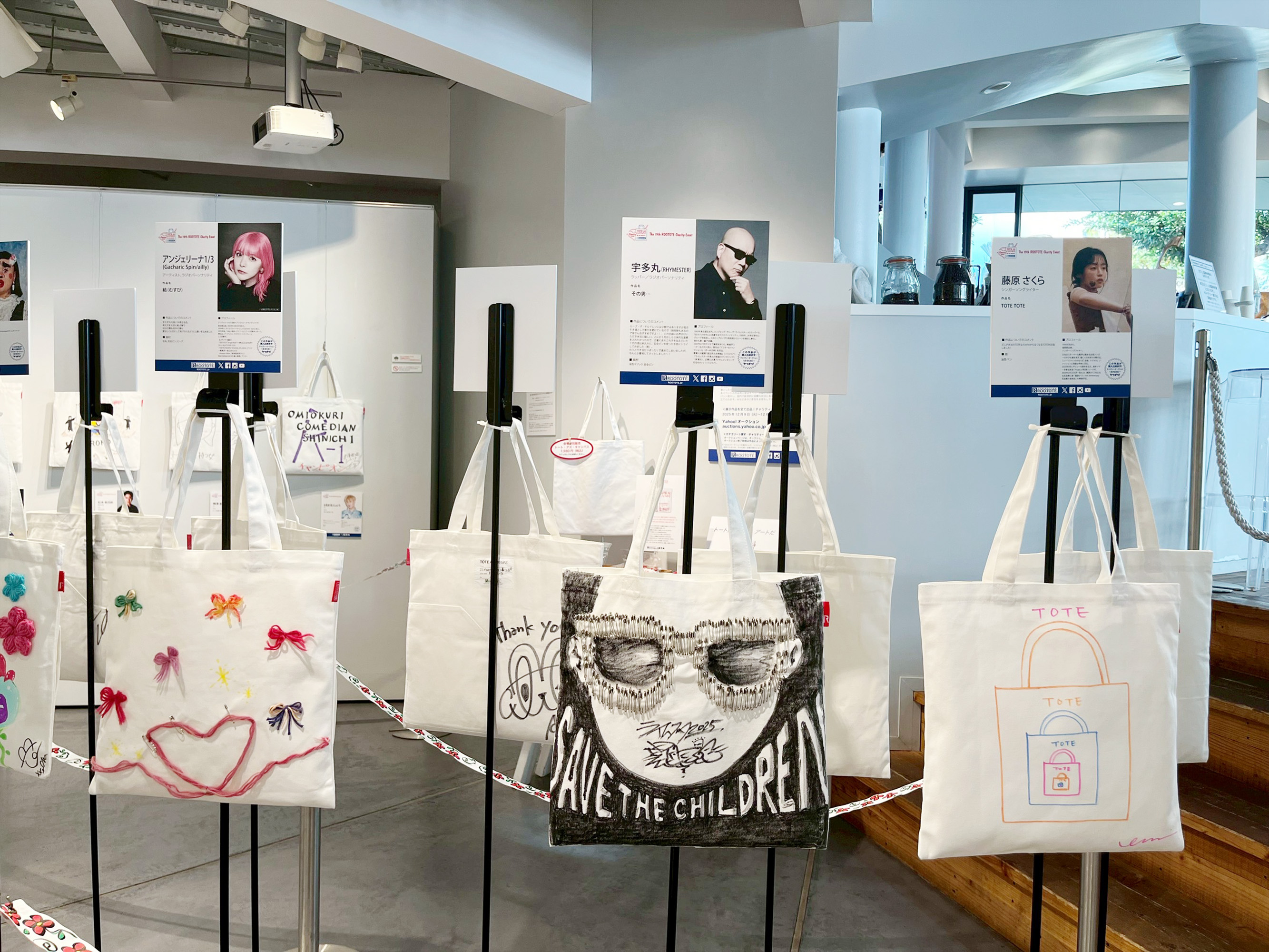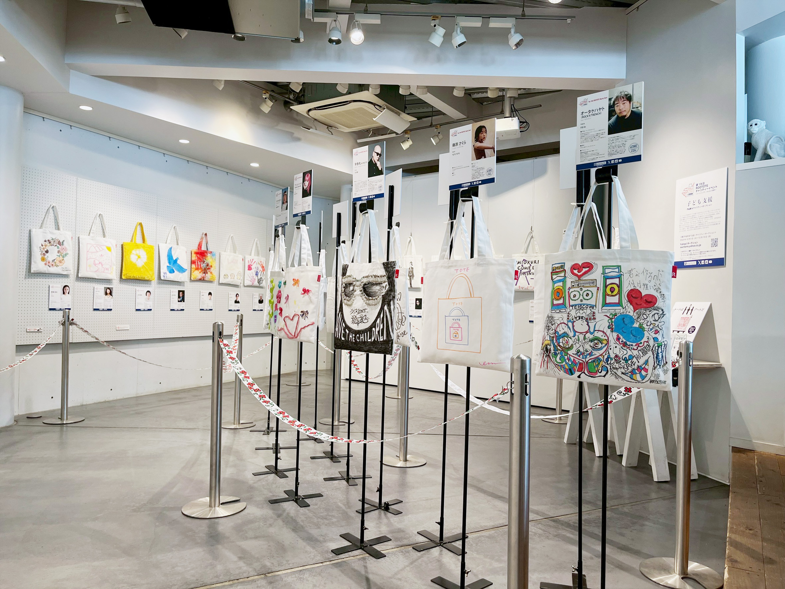 株式会社ルートート(本社:東京都渋谷区/代表取締役:神谷富士雄)が展開するトートバッグ専門ブランドROOTOTE(ルートート)は、「第19回 ROOTOTEチャリティーイベント」を開催中です。 “トートバッグ自体がアートを描くためのキャンバスであってもいいのでは”という発想から生まれた無地のトートバッグ「トート・アズ・キャンバス」に、主旨に賛同いただいた各界の著名人35組がオリジナル作品を制作。世界にひとつだけのトートバッグアートが一堂に会する展覧会を、代官山のモンキーギャラリーで開催しています。