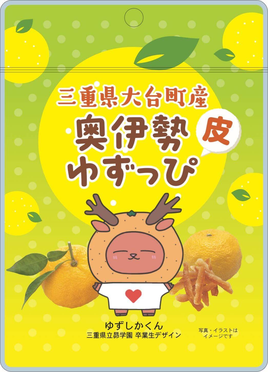 三重県大台町の「奥伊勢ゆず」の廃棄する皮を使ったアップサイクル商品第2弾 『奥伊勢ゆずっぴ(皮)』新発売。 地元の高校生がデザインしたキャラクターを使用したパッケージで登場。