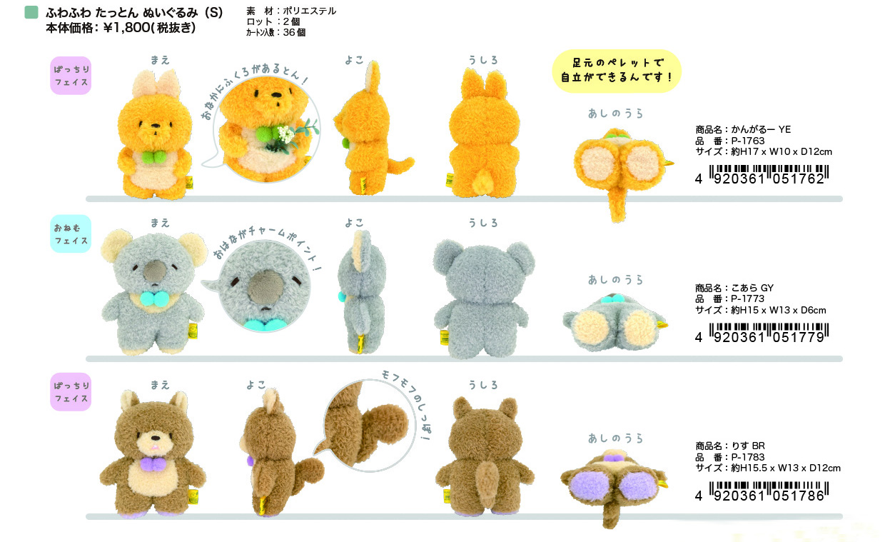 大人気! ふわふわ たっとん®️シリーズから、かんがるー、こあら、りすが仲間入りです。