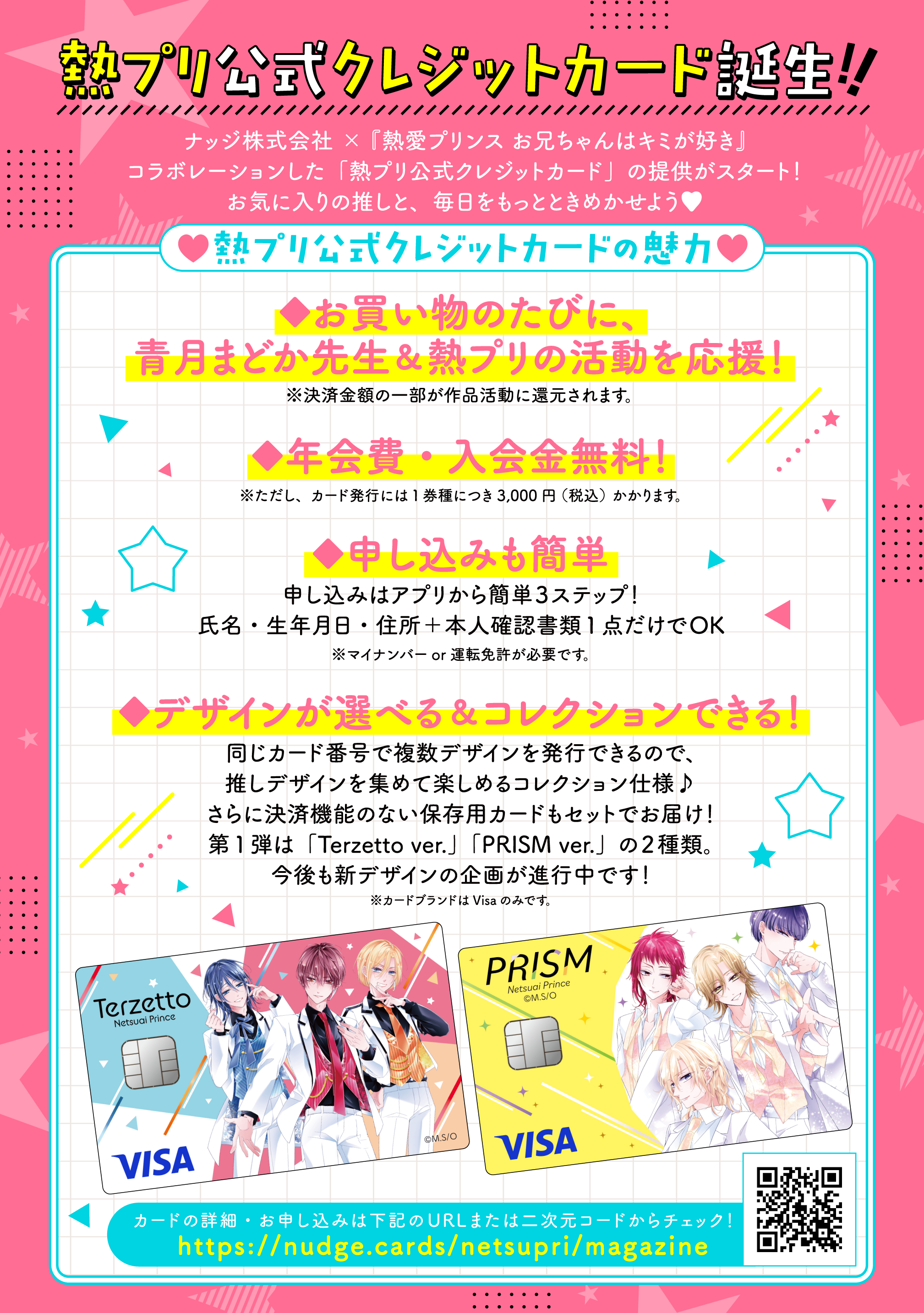 ナッジ株式会社×『熱愛プリンス お兄ちゃんはキミが好き』がコラボレーションした「熱プリ公式クレジットカードが提供スタート!
