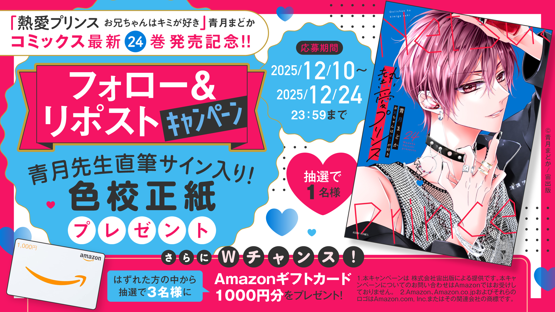 『熱愛プリンス お兄ちゃんはキミが好き』24巻の発売を記念してフォロー&リポストキャンペーン開催。