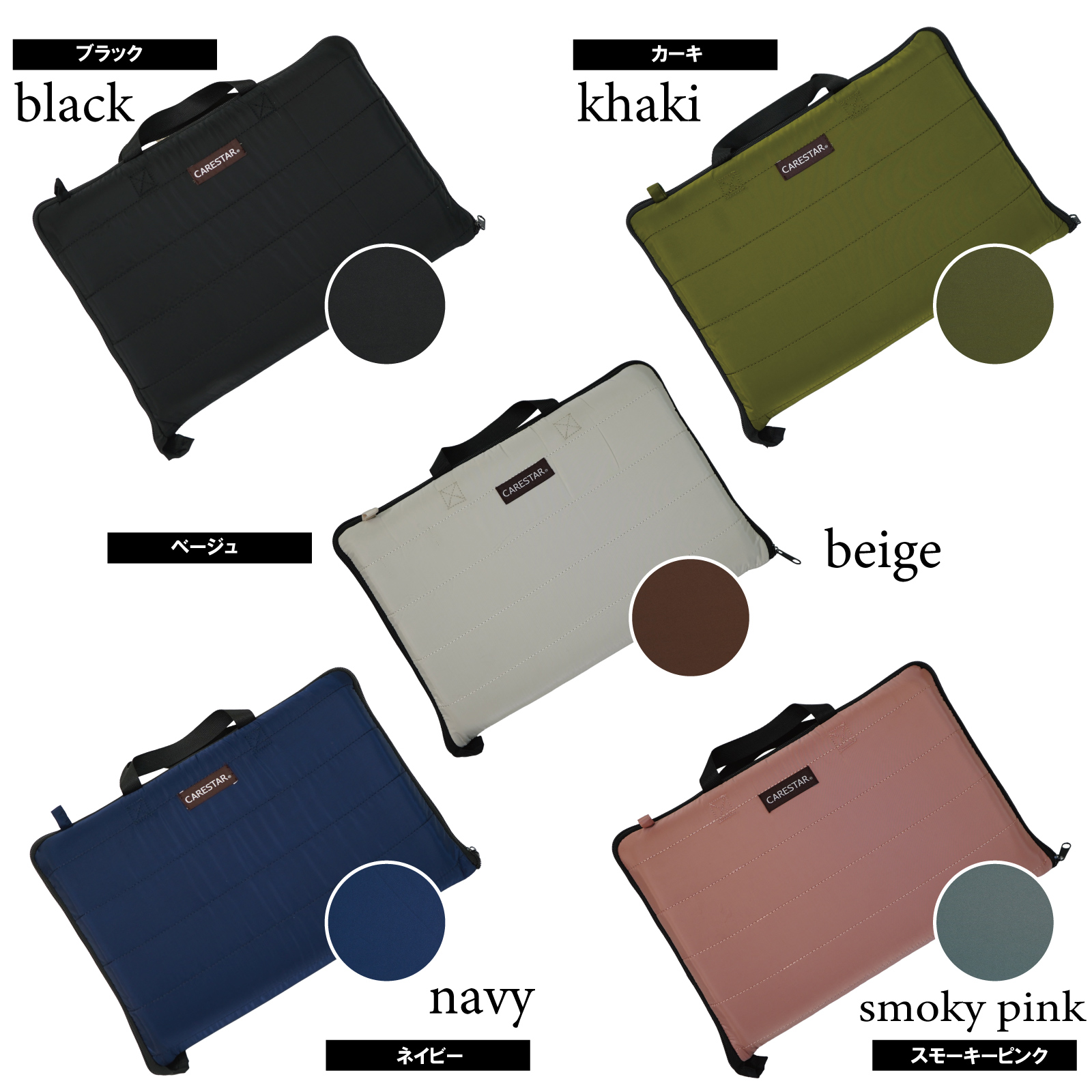 濡れた地面や椅子の上でも安心して使えるほか、ファスナー開閉式(特許庁意匠登録済))で収納も容易。使わないときはコンパクトに収納でき、バッグやクッションのように持ち歩けるデザインです。