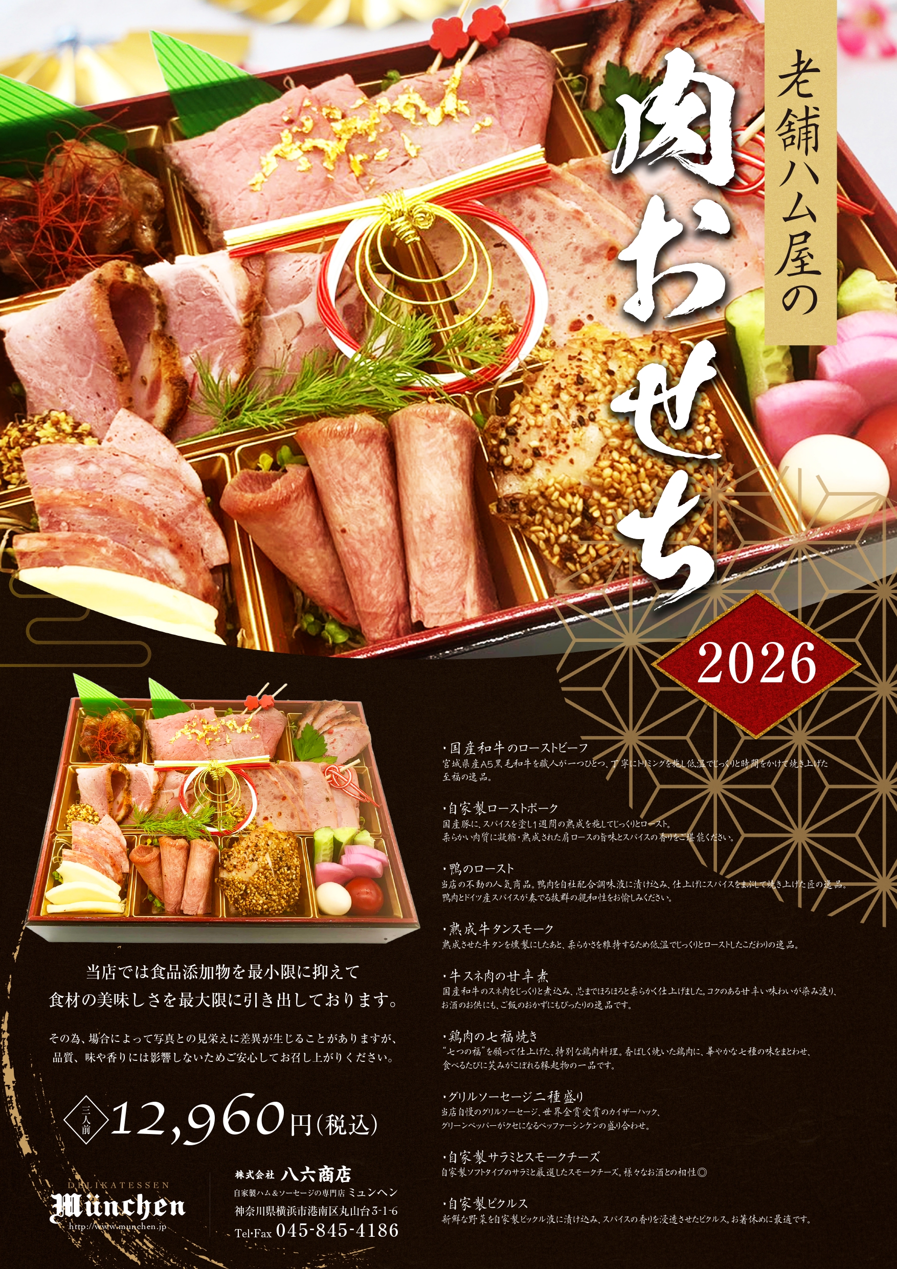 創業1985年、横浜で長く愛され続ける自家製ハム・ソーセージの名店「デリカテッセン ミュンヘン」。そんなミュンヘンから、新年の幕開けを華やかに彩る「肉おせち」と「年越しオードブル」が今年も登場!