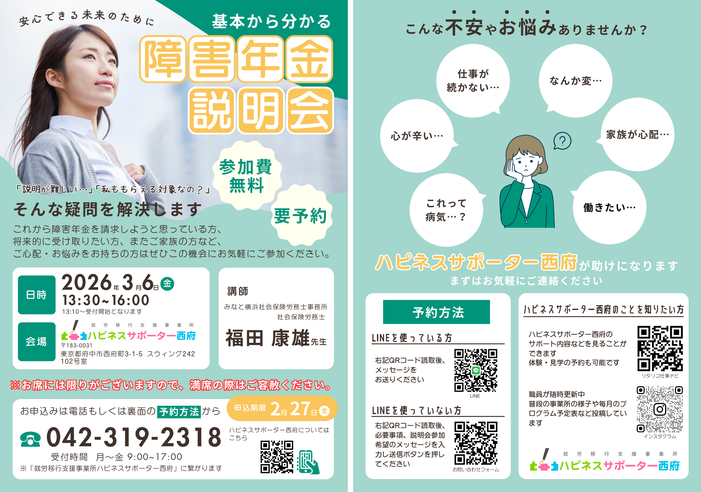 障害年金説明会【私はもらえるの!?】~2026年3月6日(金)東京都府中市で開催~