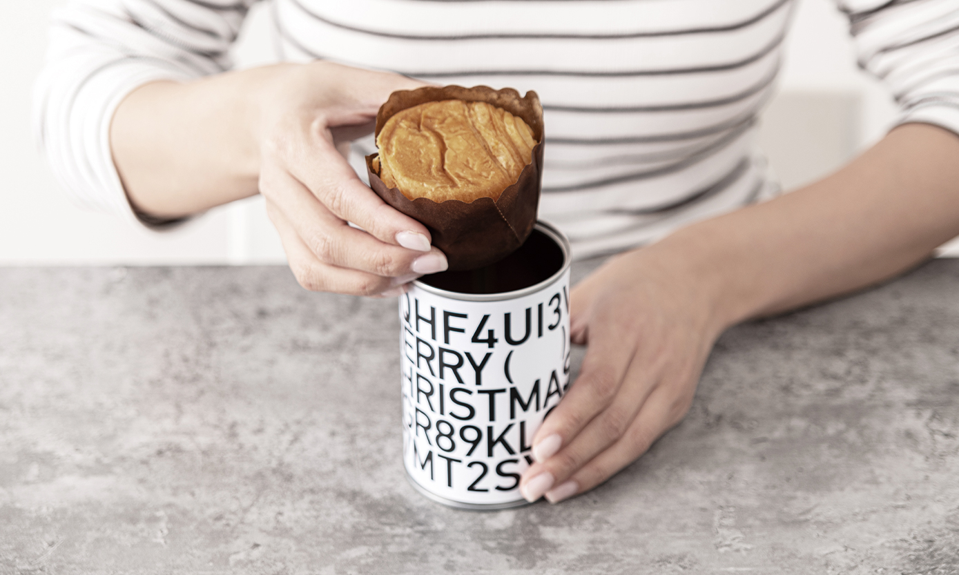 イージーオープン缶でどこでも手軽に食べられるうえ、デザイン性の高い専用缶はクリスマスシーズンのギフトにも最適です。
