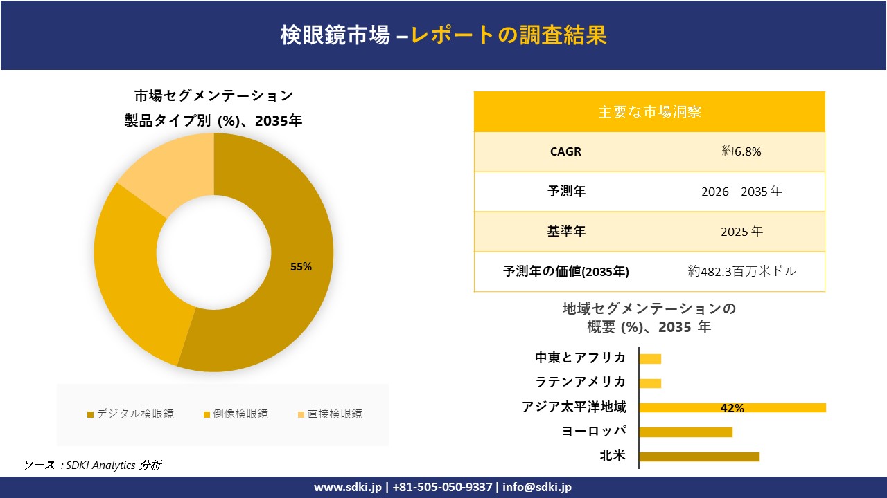 検眼鏡市場規模は2035年までに482.3百万米ドルを超える SDKI Analyticsのリサーチアナリストが調査