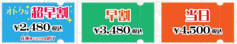 ※超早割、早割チケットで各日500基の販売数に到達した場合は当日購入はありません。