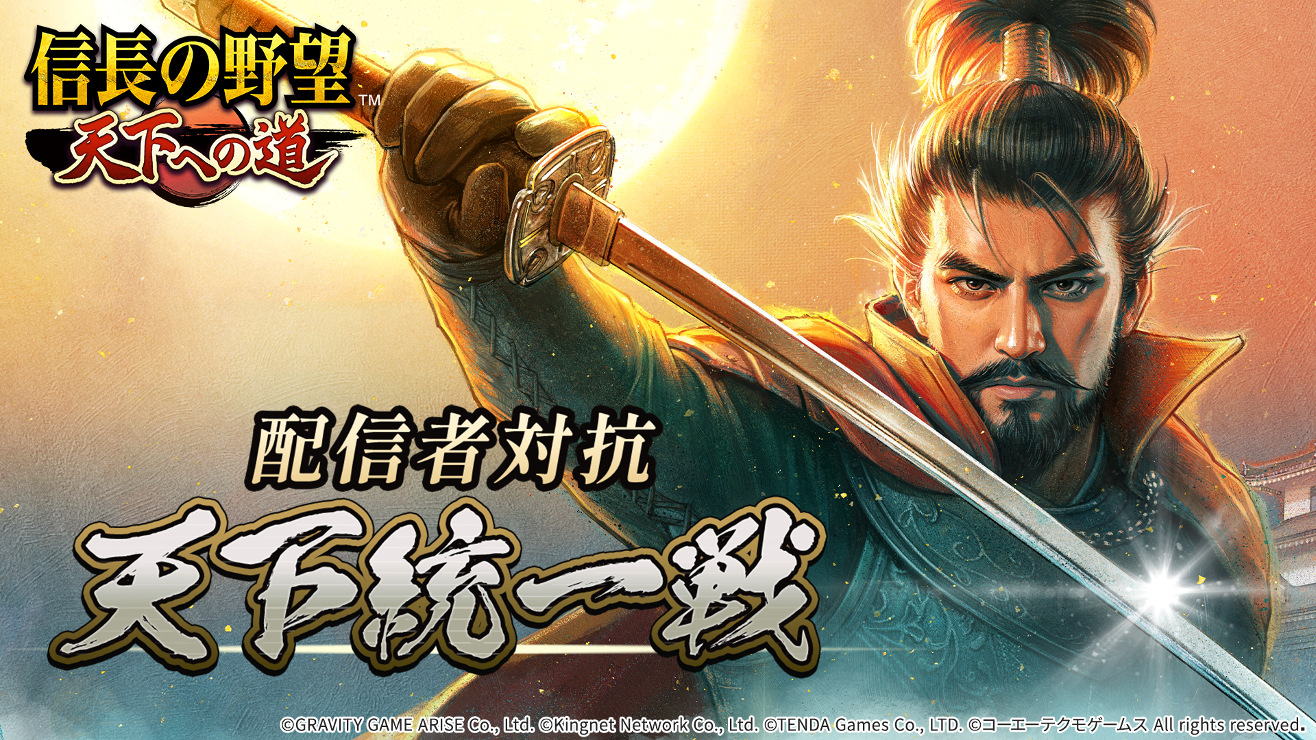 株式会社テンダゲームス(本社:東京都豊島区、代表取締役社長 浅岡亮平、以下「テンダゲームス」)は、株式会社コーエーテクモゲームス(本社:神奈川県横浜市、代表取締役社長:鯉沼久史、以下「コーエーテクモゲームス」)が著作権及び知的財産権を保有する『信長の野望・天道』の正式ライセンスを受け、パブリッシャーをグラビティゲームアライズ株式会社(所在地:東京都中央区、以下「グラビティゲームアライズ」)、開発をテンダゲームスとKingnet株式会社(所在地:中国上海、以下「Kingnet」)で協力して進めている『信長の野望 天下への道』において、配信者が勢力を率いて対抗戦を繰り広げる期間限定イベントの開催を決定いたしました。
